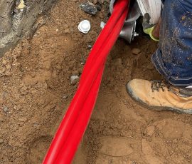 The 11kV HV Mains route is 3,633Km commencing at Eastfield Primary Substation to a customer built RMU enclosure in CLDN car park.